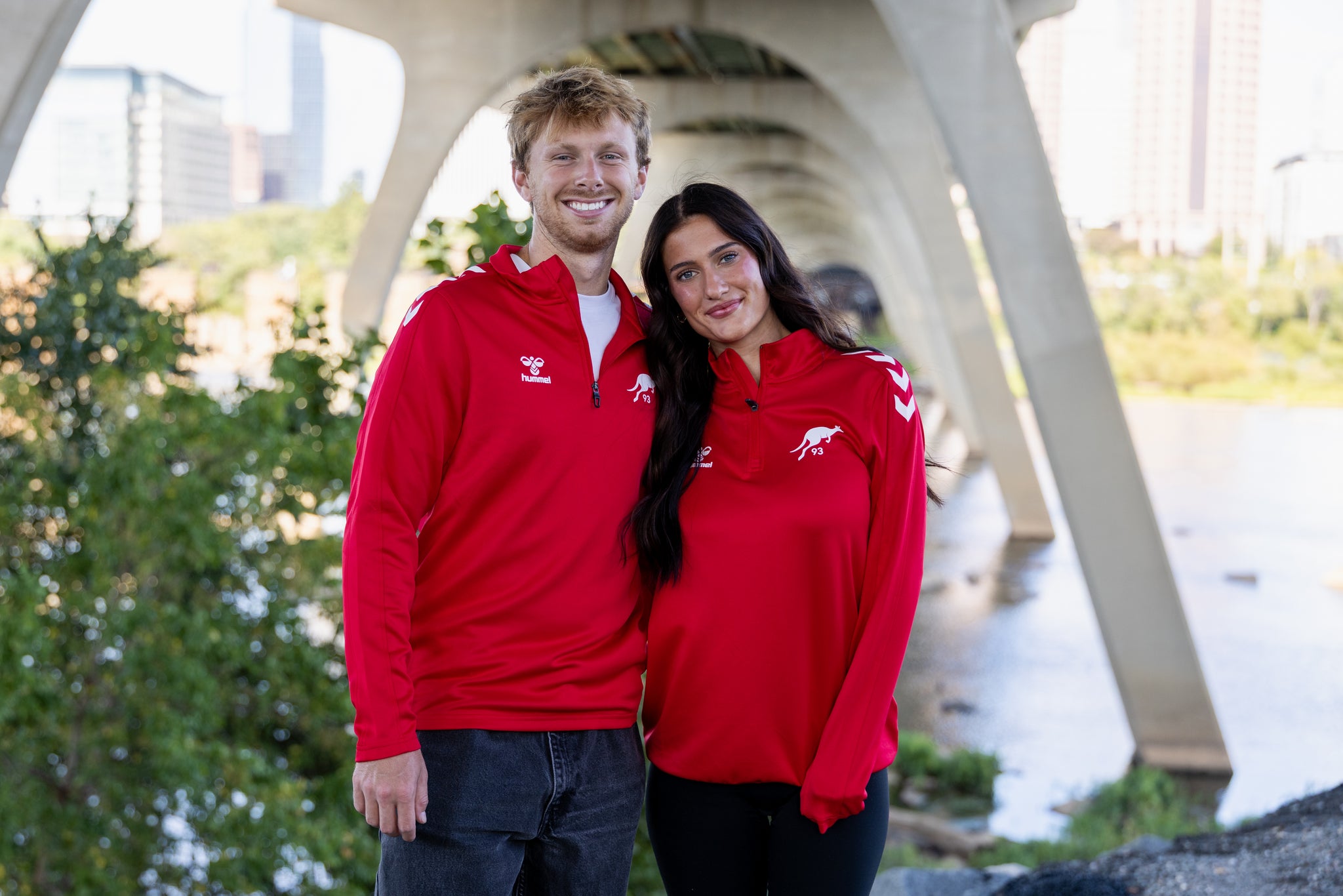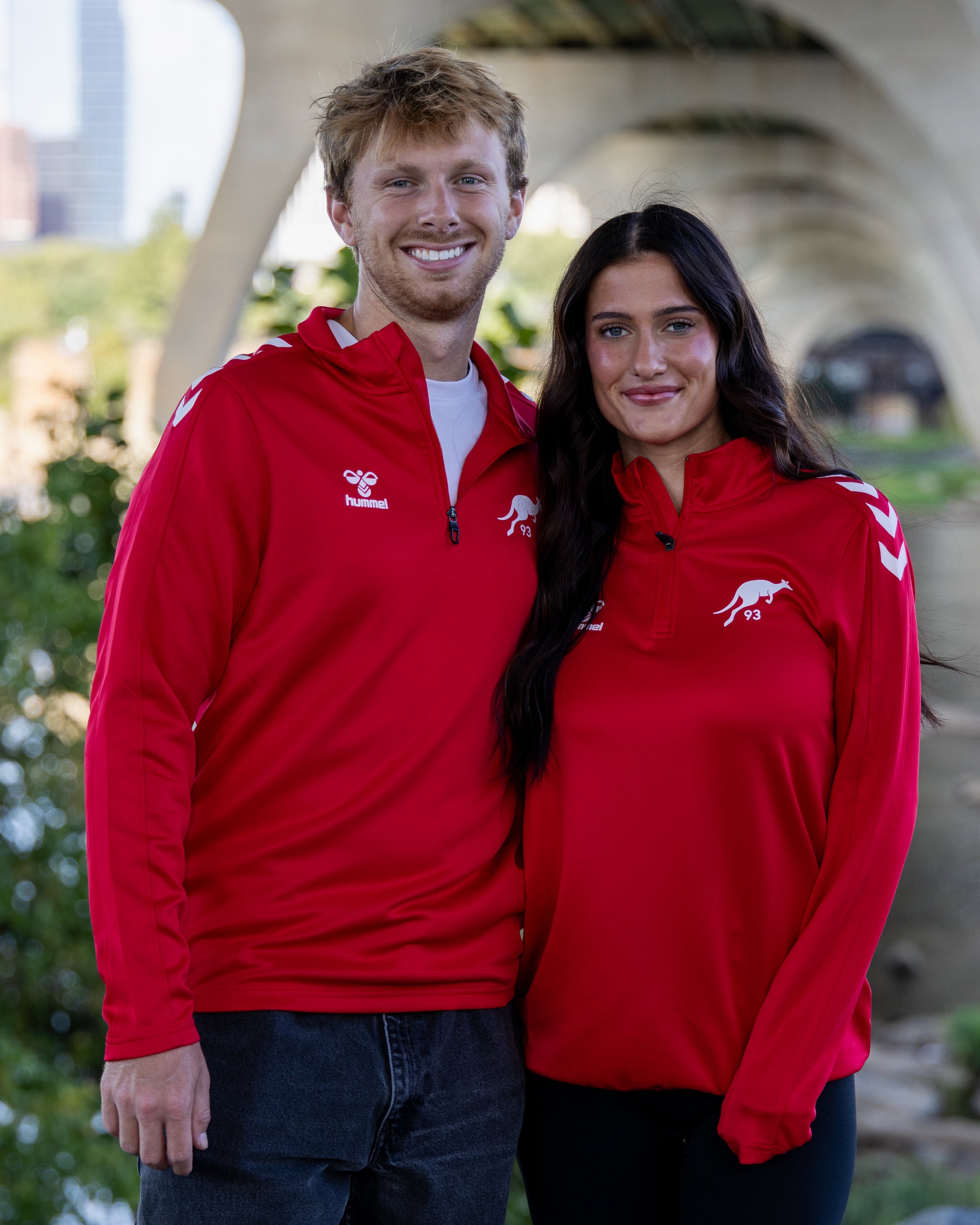 Hummel 1/4 Zip in red featuring the Roo 93 logo in white on the left chest
