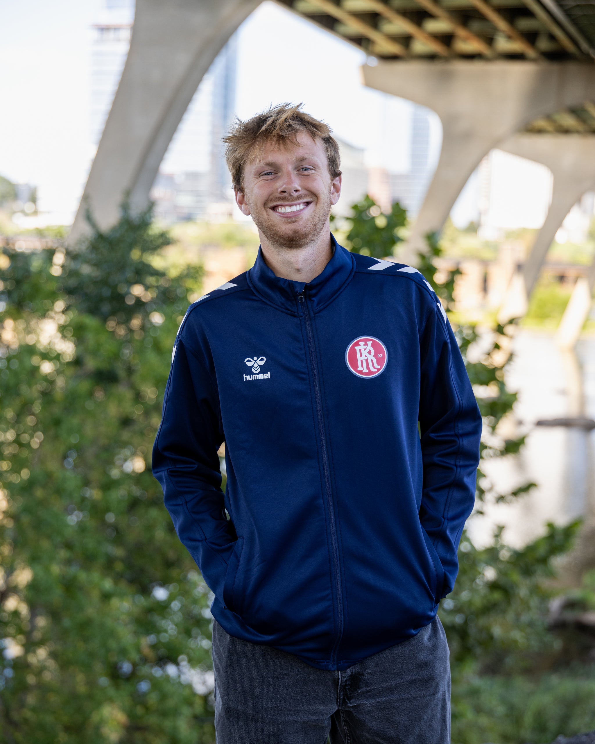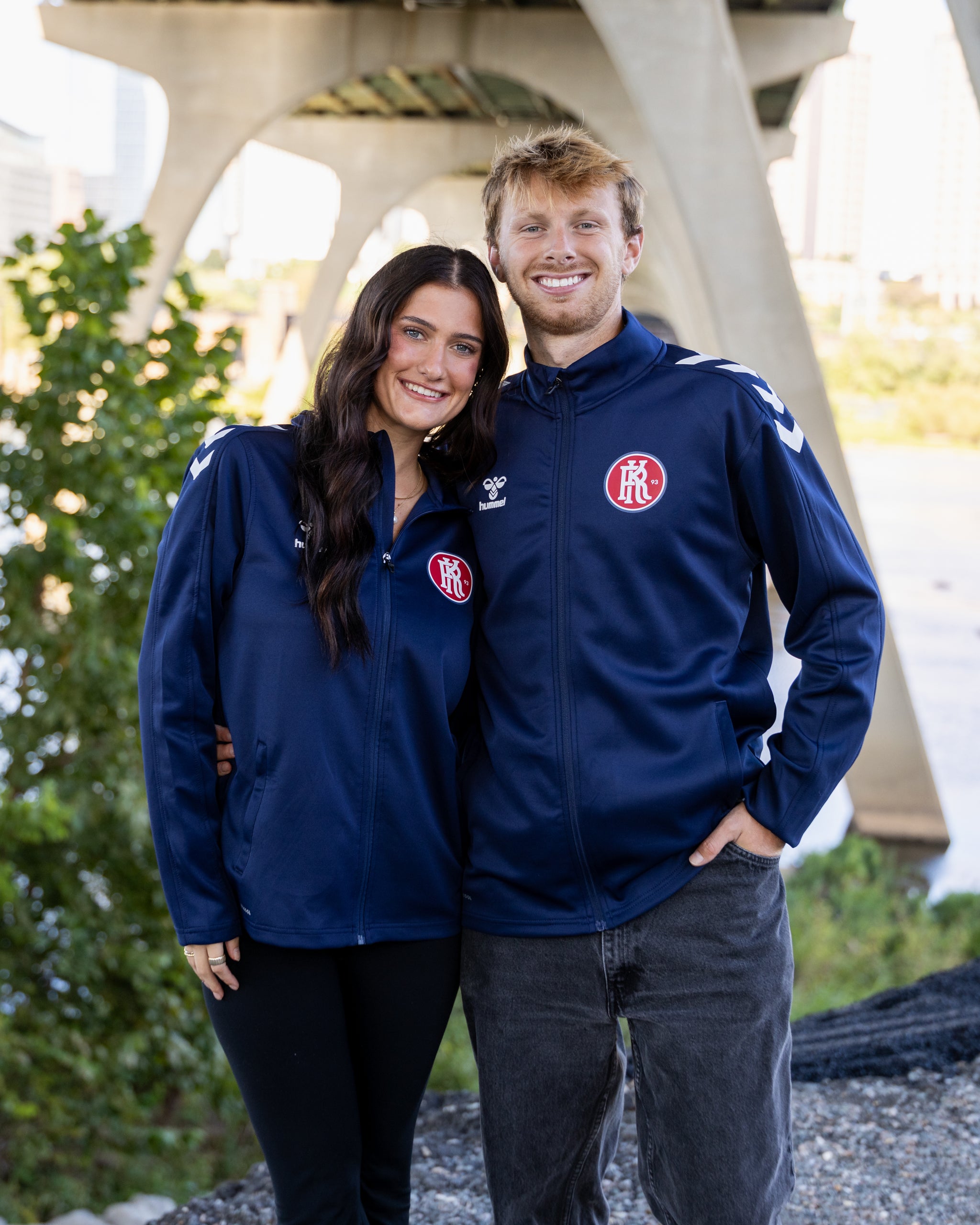 Hummel full zip in blue featuring the secondary Kickers logo in red and white